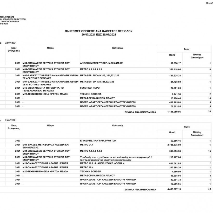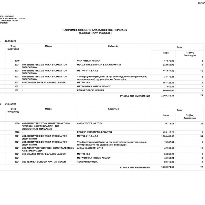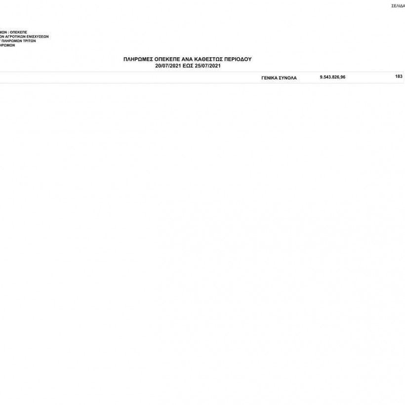 Συγκεκριμένα, ο οργανισμός το διάστημα από τις 20/07/2021 έως τις 25/07/2021 κατέβαλε σε 183 δικαιούχους το ποσό των 9.543.826,96 ευρώ.