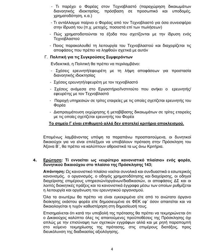 Συχνές Ερωτήσεις - Απαντήσεις για τον «ΑΞΟΝΑΣ Β: Χρηματοδότηση Λειτουργίας Δομών και Δράσεων Μεταφοράς Τεχνολογίας»