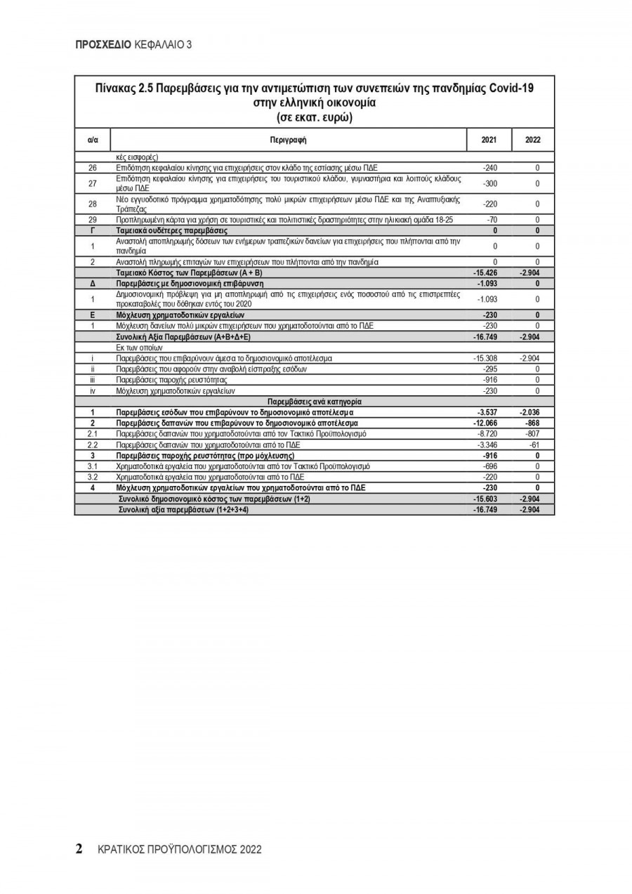 Για 2022 οι κυριότερες παρεμβάσεις για την αντιμετώπιση των οικονομικών συνεπειών της πανδημίας εστιάζονται στις ακόλουθες: