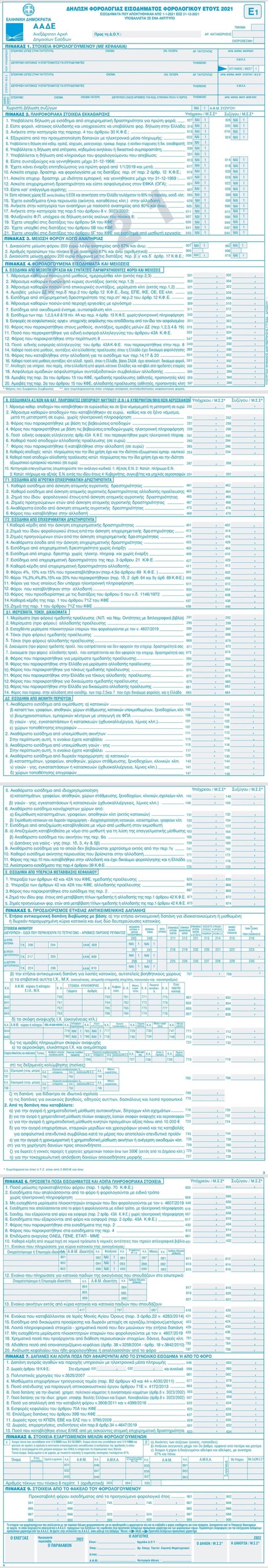 Φορολογικές δηλώσεις: Οι αλλαγές του εντύπου Ε1 για το φορολογικό έτος 2021