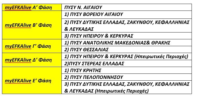 Μετά και την συγκεκριμένη επέκταση (Ζ΄ Φάση), έχουν ενταχθεί στο myEFKAlive στο σύνολό τους οι Περιφερειακές Υπηρεσίες Συντονισμού και Υποστήριξης (ΠΥΣΥ) του e-ΕΦΚΑ Βορείου Αιγαίου, Νοτίου Αιγαίου, Ηπείρου & Κέρκυρας, Δυτικής Ελλάδας, Ζακύνθου, Κεφαλληνίας & Λευκάδας, Πελοποννήσου, Κρήτης, Ανατολικής Μακεδονίας & Θράκης, Θεσσαλίας, Δυτικής Μακεδονίας, Στερεάς Ελλάδας και Κεντρικής Μακεδονίας. Στόχος είναι μέχρι το τέλος του έτους η υπηρεσία να επεκταθεί σταδιακά και σε περιοχές της Αττικής.