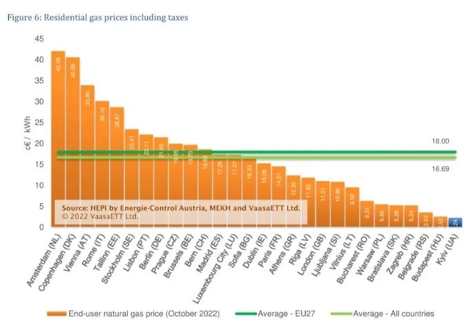 Σύμφωνα με τα μηνιαία στοιχεία του HEPI (Ευρωπαϊκός Δείκτης Τιμών Ενέργειας) για τον Οκτώβριο του 2022, η τιμή λιανικής στην Ελλάδα ήταν η δεύτερη φθηνότερη, ανάμεσα σε 15 ευρωπαϊκές χώρες, στα κυμαινόμενα τιμολόγια.