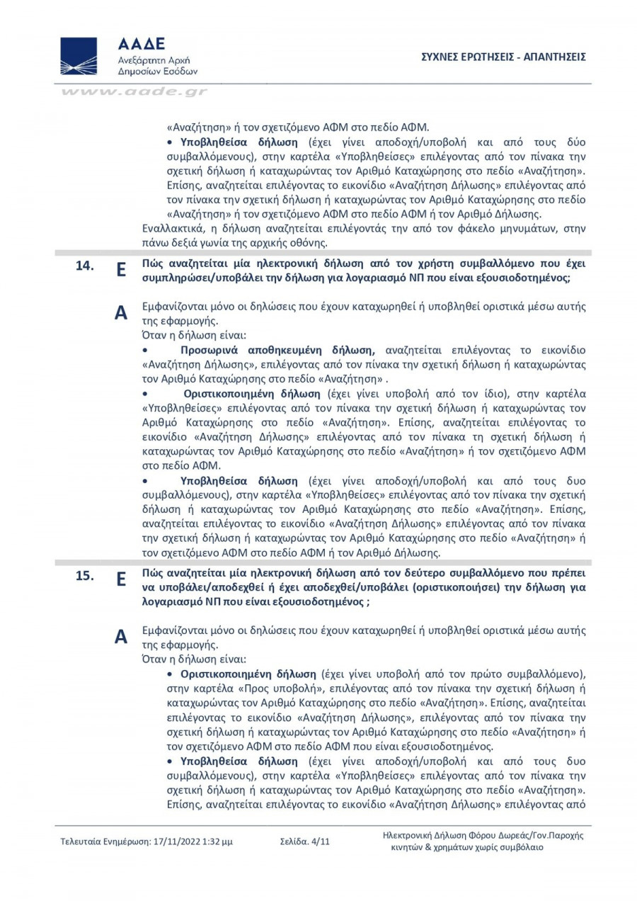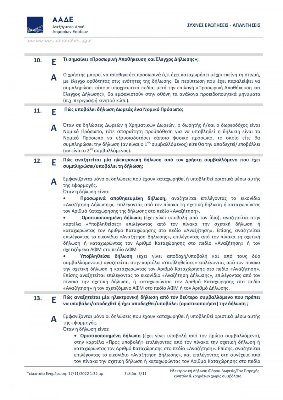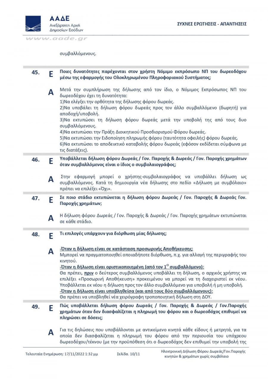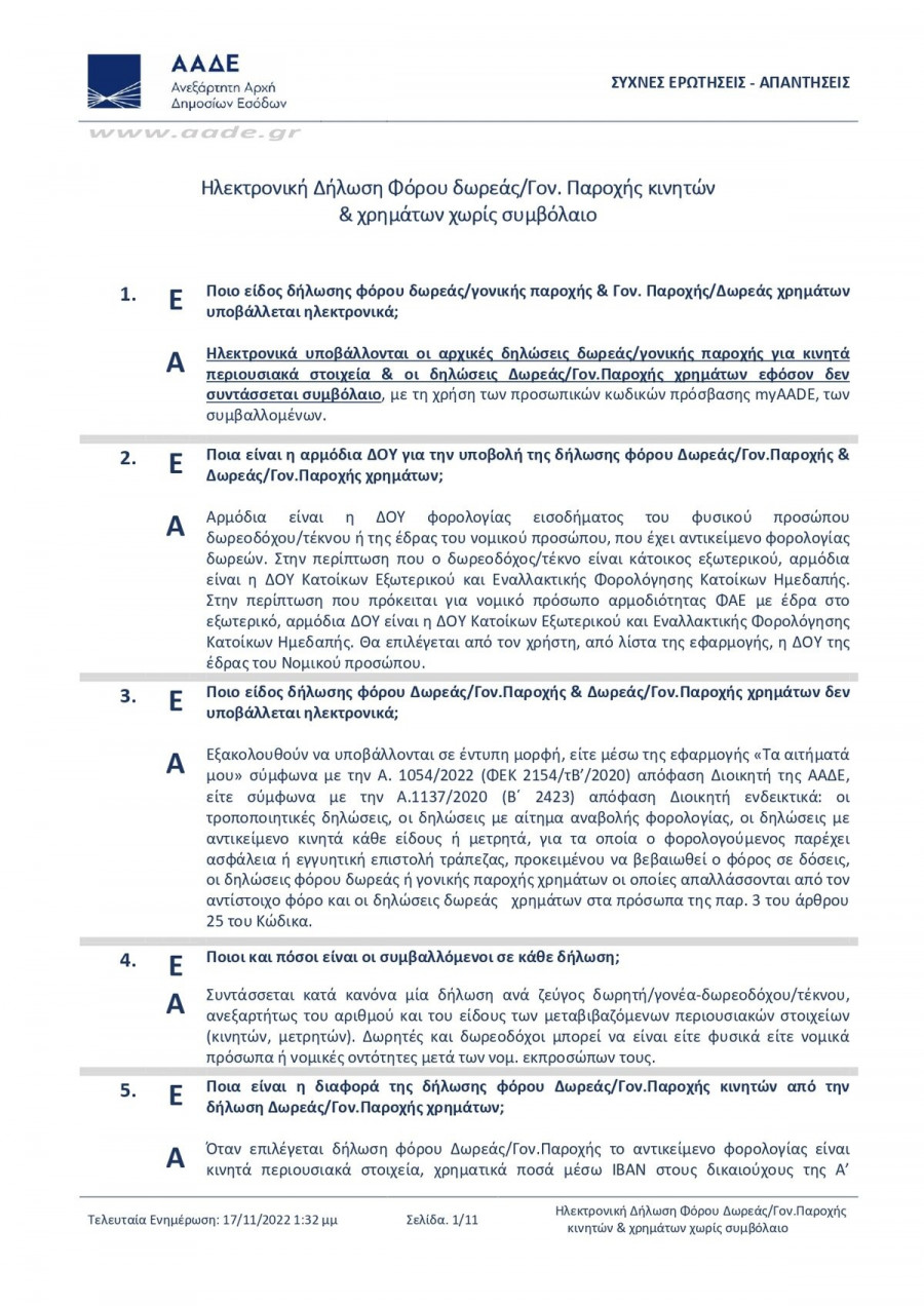 Συγκεκριμένα, με απόφαση του Διοικητή της ΑΑΔΕ Γιώργου Πιτσιλή (A.1162/2022), από σήμερα προαιρετικά και από την 01.01.2023 υποχρεωτικά, για δωρεές και γονικές παροχές που έχουν συντελεστεί από 01.01.2022 και μετά και για τις οποίες δεν καταρτίζεται συμβολαιογραφικό έγγραφο, υποβάλλονται ψηφιακά, μέσω της εφαρμογής myPROPERTY, οι παρακάτω δηλώσεις:Remaining Time-0:00FullscreenMute