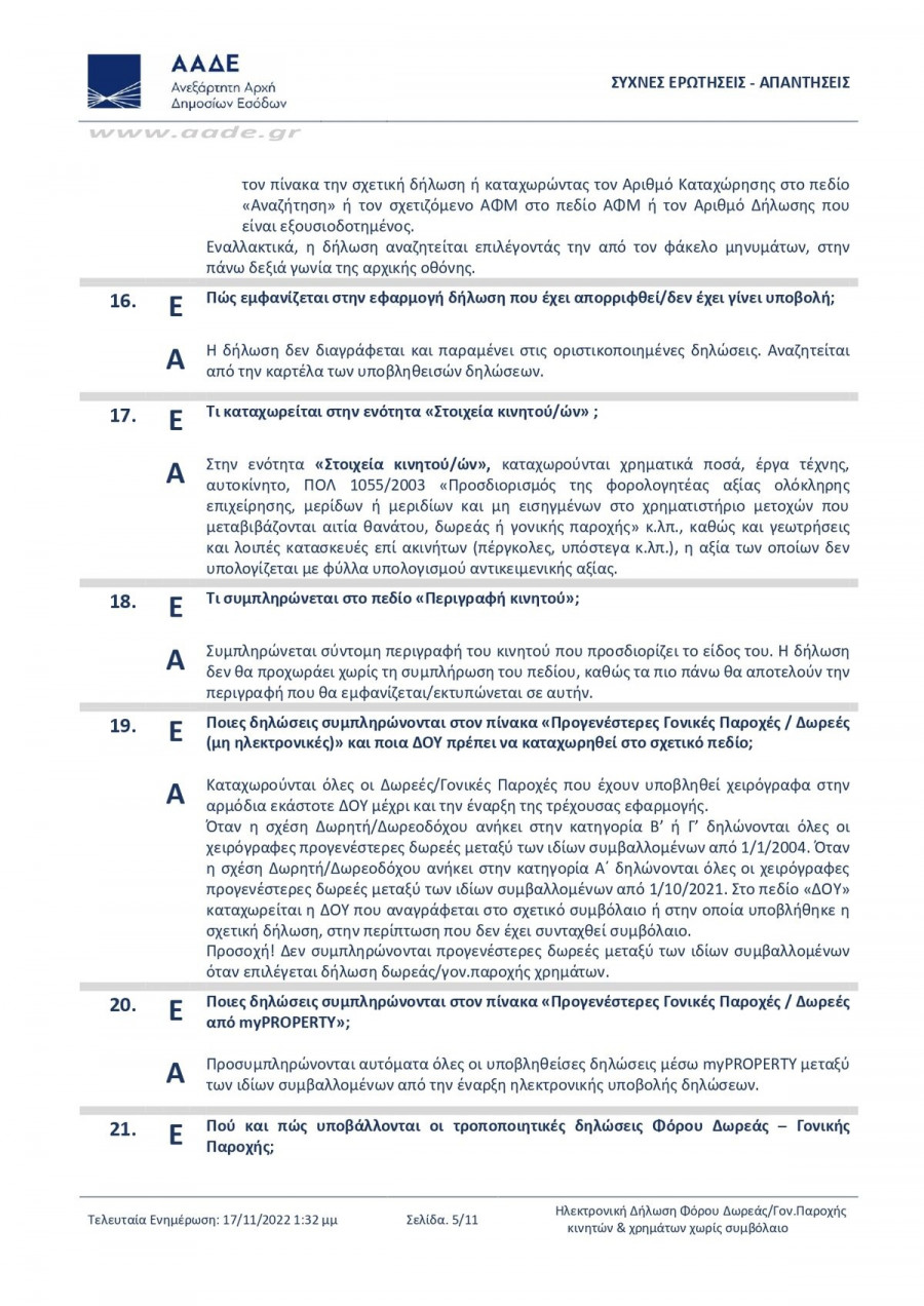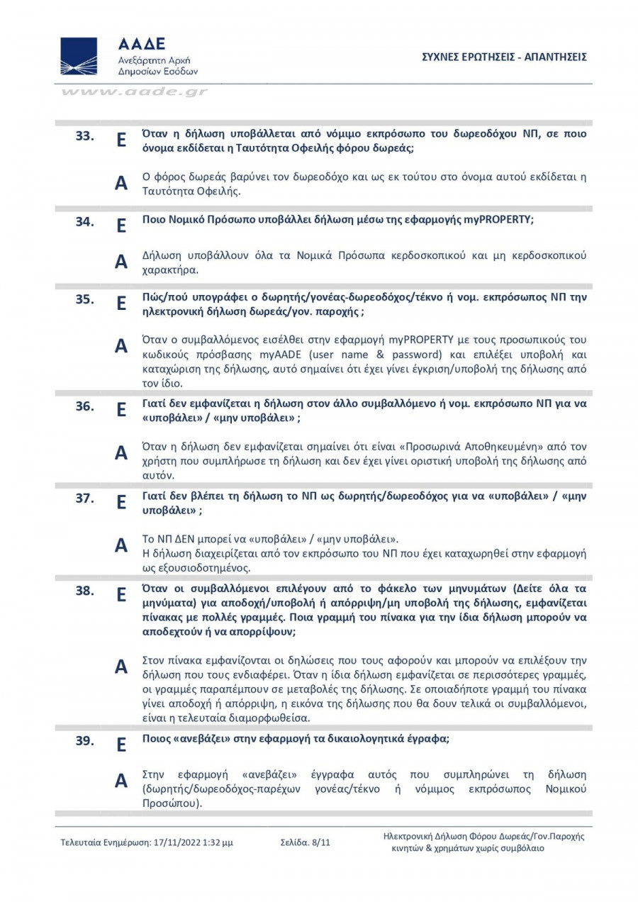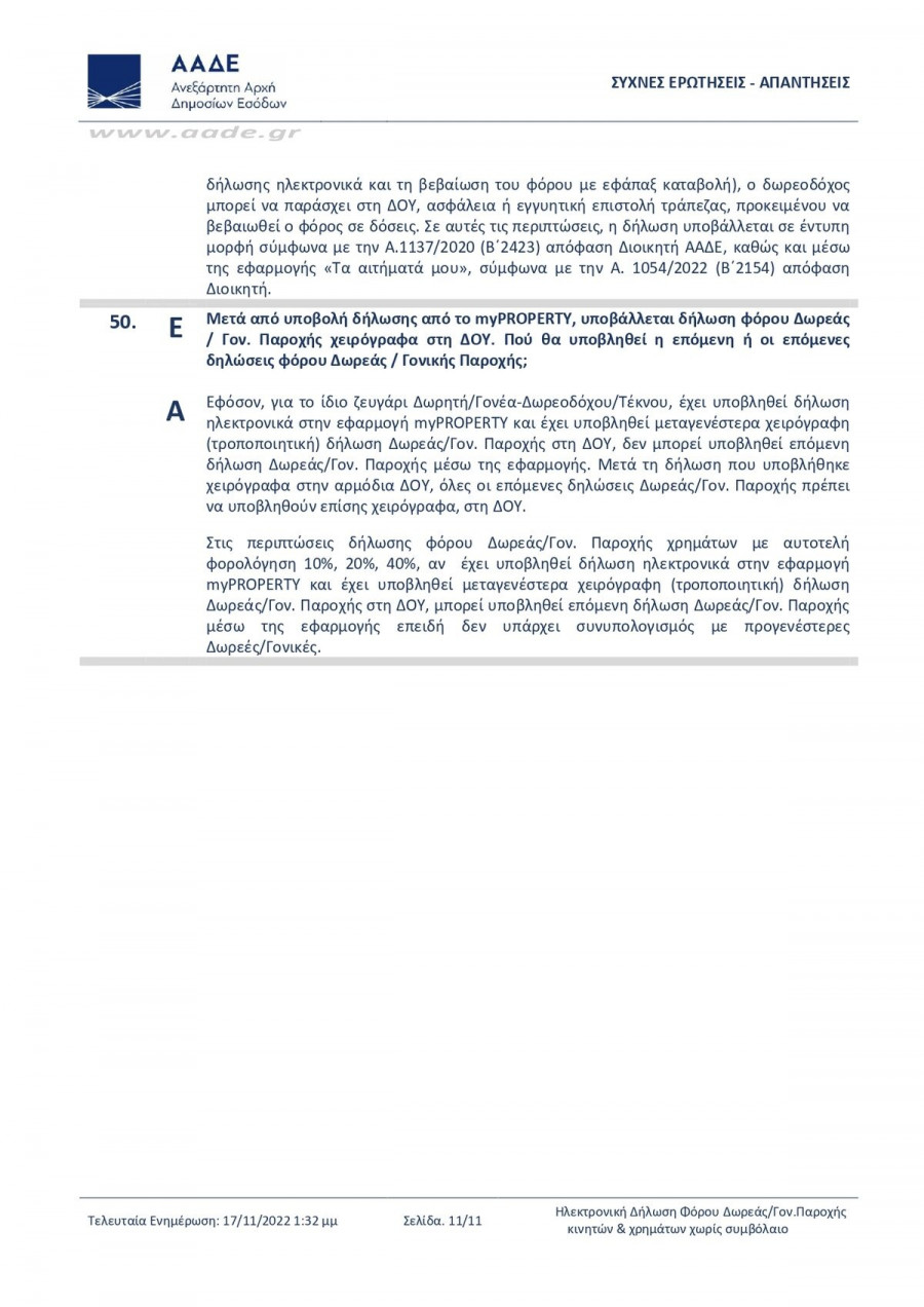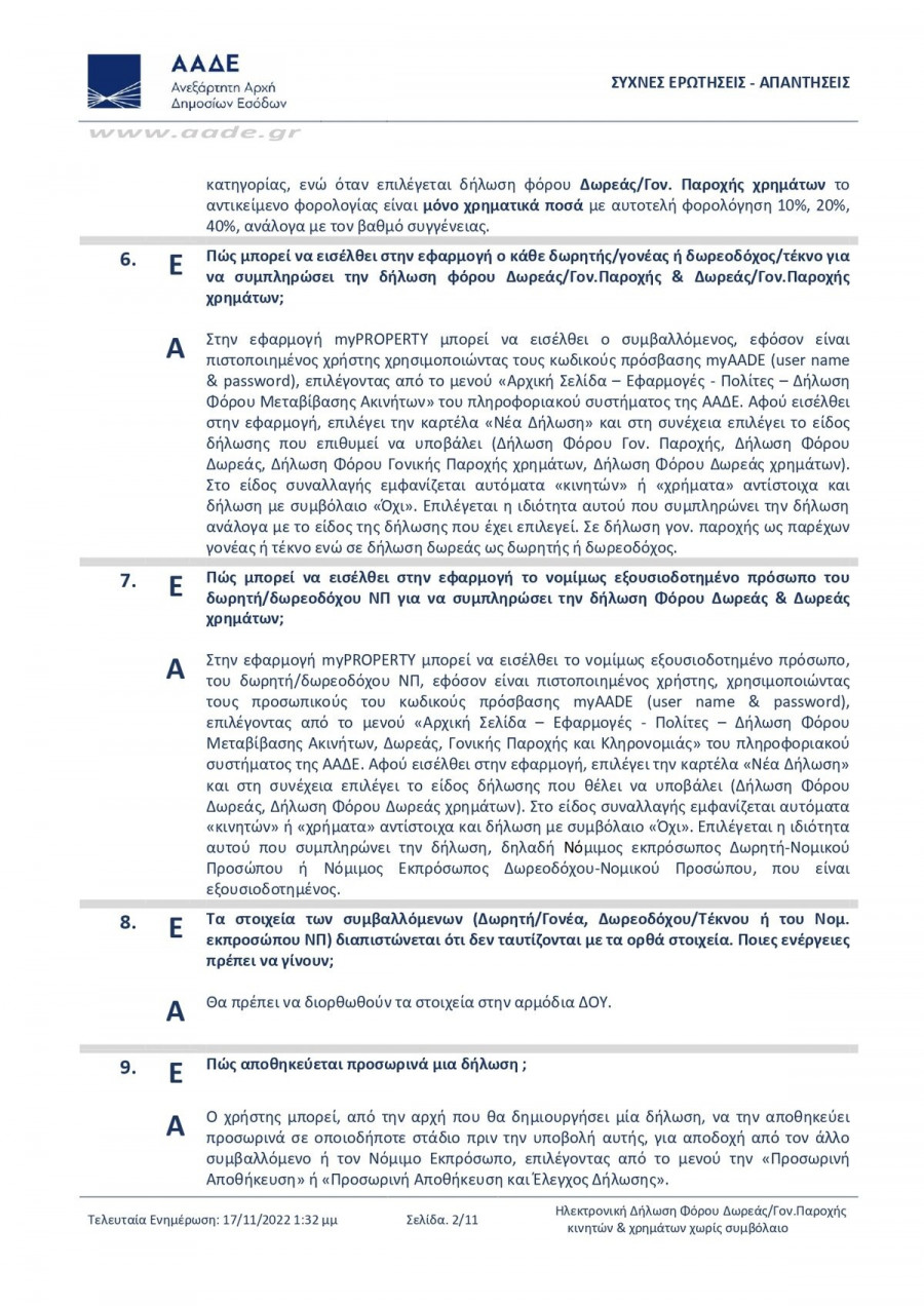 Μέσω της πλατφόρμας «myPROPERTY», οι ενδιαφερόμενοι πολίτες μπορούν να υποβάλλουν αρχικές δηλώσεις φόρου δωρεάς και γονικής παροχής κινητών και χρημάτων που έχουν συντελεστεί από την 01.01.2022 και μετά, για τις οποίες δεν απαιτείται η σύνταξη συμβολαιογραφικού εγγράφου.