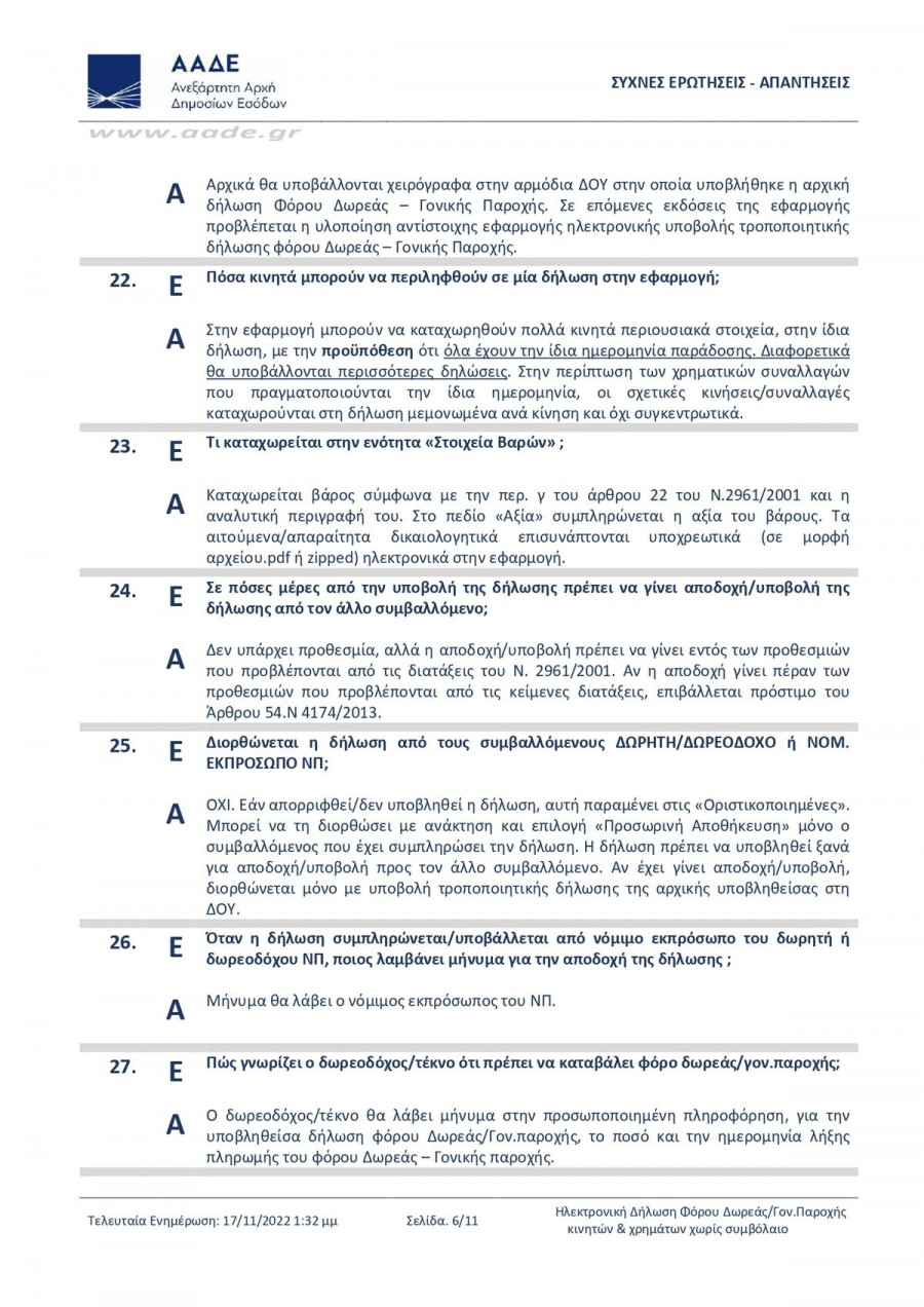 • Αρχικές (εμπρόθεσμες και εκπρόθεσμες) δηλώσεις φόρου δωρεάς και γονικής παροχής κινητών (όπως αυτοκινήτων, εταιρικών μεριδίων, εισηγμένων ή μη μετοχών, έργων τέχνης κ.λπ.).