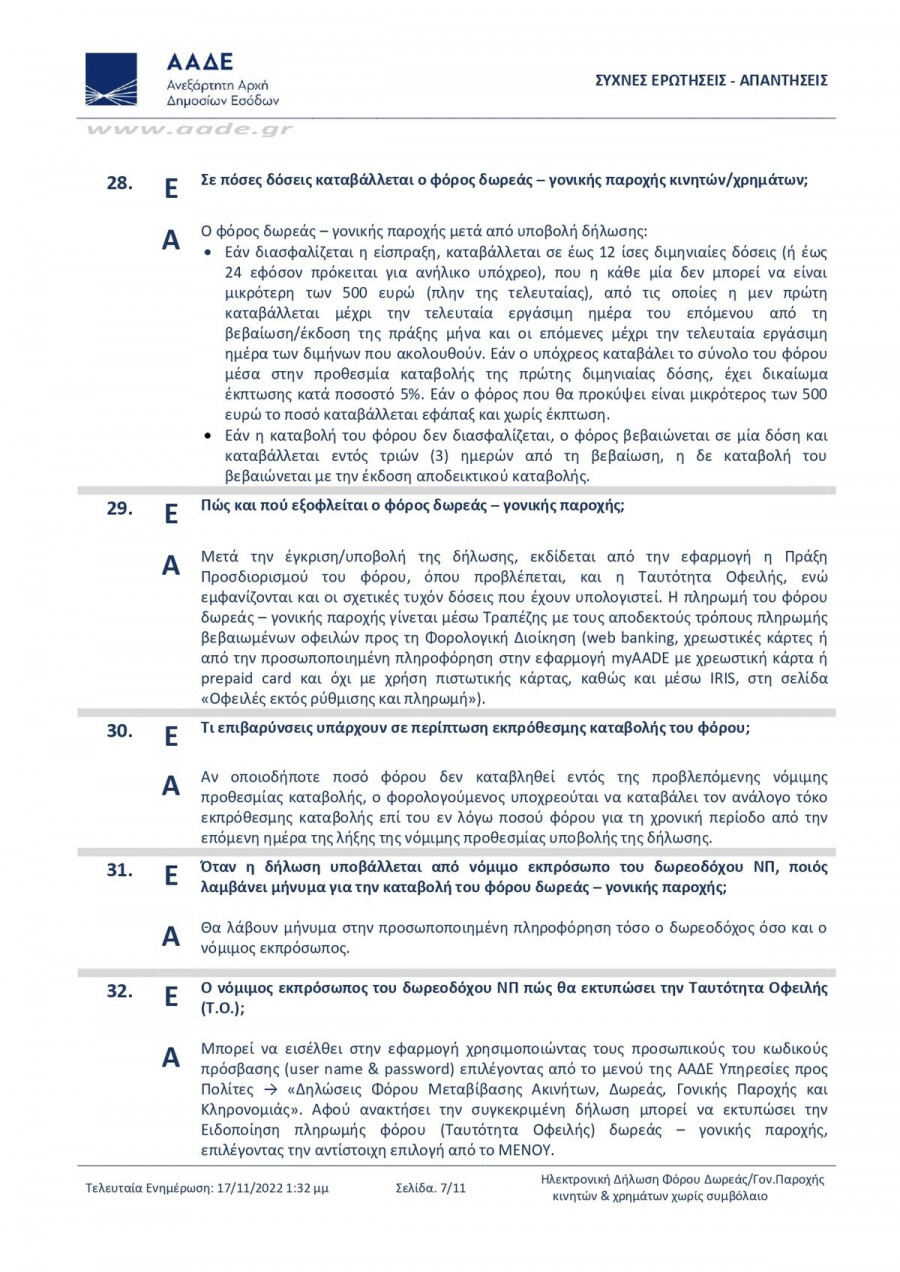 • Αρχικές (εμπρόθεσμες και εκπρόθεσμες) δηλώσεις φόρου δωρεάς και γονικής παροχής χρημάτων.