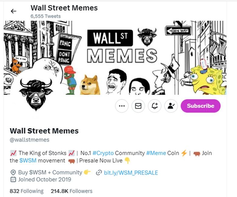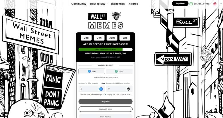 Το κρυπτονόμισμα που ξεχωρίζουμε στις προβλέψεις για Ιούνιο του 2023 είναι το Wall Street Memes.