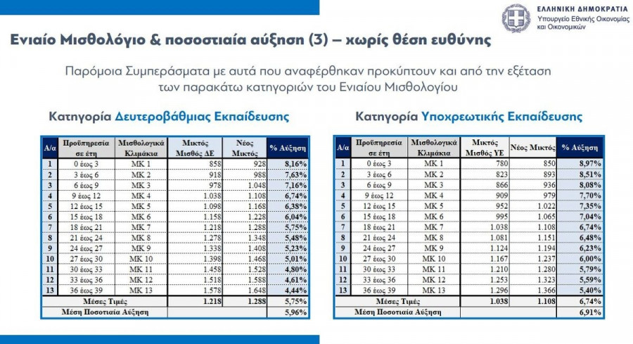 Σύμφωνα με το υπουργείο, οι αυξήσεις που θα εφαρμοστούν από 1/1/2024 κατανέμονται ως εξής: