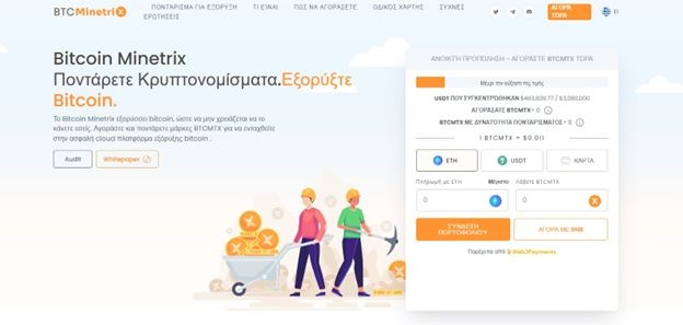 Το Bitcoin Minetrix (BTCMTX) προσφέρει μια νέα προοπτική στην εξόρυξη κρυπτονομισμάτων. Πρόκειται για μια πλατφόρμα εξόρυξης στο cloud, η οποία προσφέρει τη δυνατότητα για εξόρυξη Bitcoin, χωρίς εξειδικευμένο εξοπλισμό ή γνώσεις.