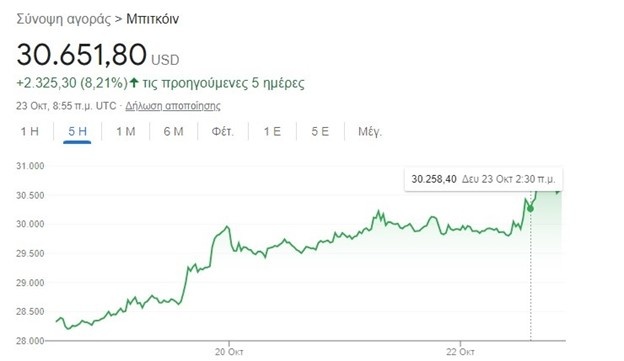 Είναι λοιπόν ιδιαίτερα λογικό, οι προβλέψεις τιμής του Bitcoin να είναι αρκετά αισιόδοξες για το επερχόμενο χρονικό διάστημα. Μάλιστα, δεν είναι λίγοι οι αναλυτές που αναμένουν την τιμή του Bitcoin να ξεπεράσει τα 40.000 δολάρια πριν το κλείσιμο του έτους – κάτι που φυσικά οδήγησε στην άνοδο της τιμής του BTC πάνω από τις 30 χιλιάδες και σήμερα.