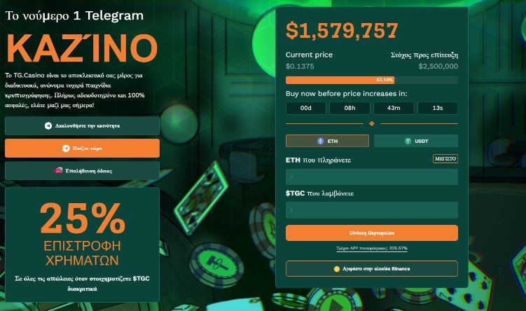 - Το ενδιαφέρον των επενδυτών για το TG Casino είναι αρκετά μεγάλο, οδηγώντας σε συγκεντρωθέντα κεφάλαια που ξεπερνούν το 1,5 εκατομμύριο δολάρια.