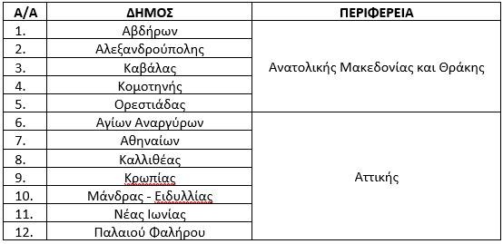 Σε περίπτωση που υπάρξουν αλλαγές ή/και προσθήκες σχετικά με τους Δήμους στους οποίους θα υλοποιηθεί η πιλοτική εφαρμογή της Δράσης, θα υπάρξει σχετική ενημέρωση και μέσω δελτίου τύπου.