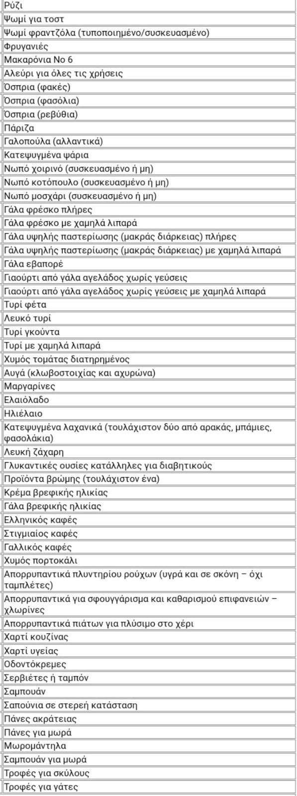 Επισυνάπτεται ο πίνακας με τα είδη που αποτελούν το Καλάθι του Καταναλωτή: