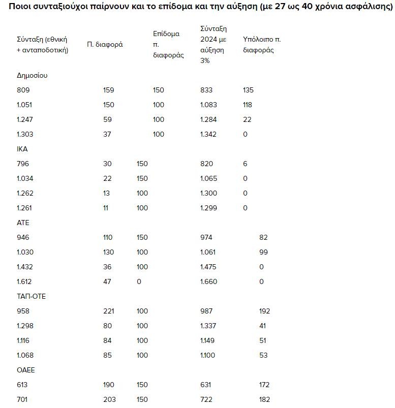 Οι συνταξιούχοι χωρίς προσωπική διαφορά θα πάρουν όλη την αύξηση.