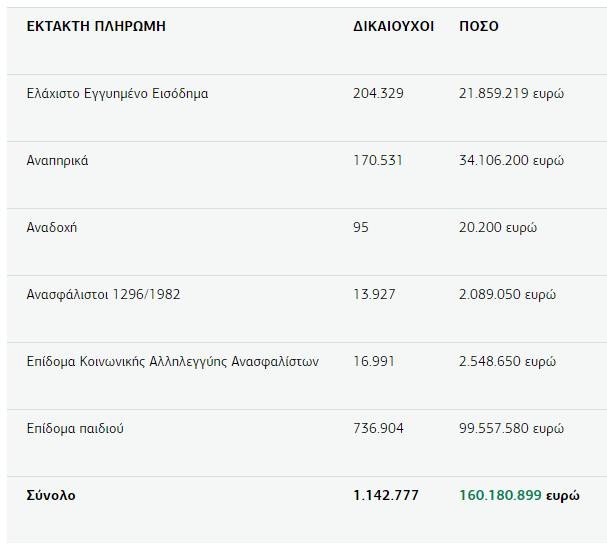 Η έκτακτη πληρωμή του Δεκεμβρίου 2023 για το “Επίδομα Κοινωνικής Αλληλεγγύης Ευάλωτων νοικοκυριών”, μετά την οριστικοποίηση του αριθμού των δικαιούχων, έχει ως εξής: