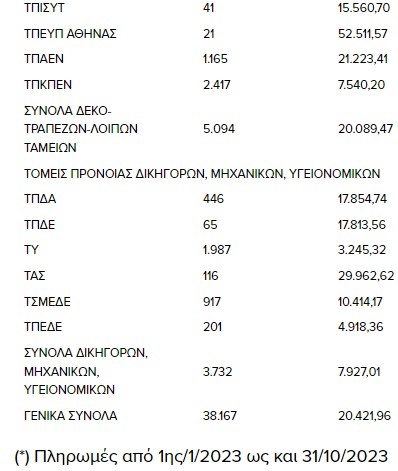 Για παράδειγμα, σύμφωνα με τον αποκαλυπτικό πίνακα που δημοσιεύει ο «Ελεύθερος Τύπος» και αφορά στις πληρωμές μέχρι και Οκτώβριο του 2023:
