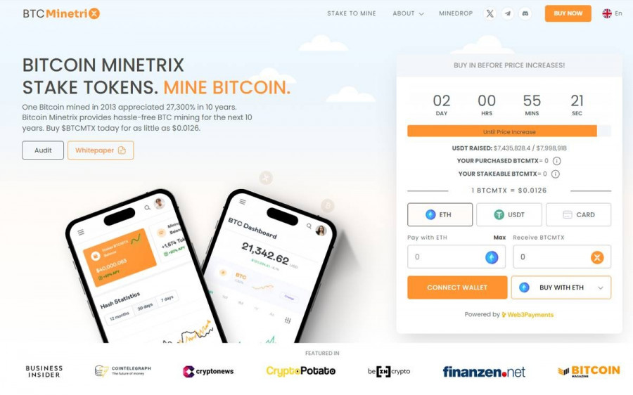 Κατά τις πρώτες μέρες του 2024, όλα δείχνουν πως το ενδιαφέρον της κοινότητας crypto στρέφεται προς το Bitcoin Minetrix . Ένα καινοτόμο έργο που εισάγει μια πλατφόρμα εξόρυξης Bitcoin στο Cloud. Συγκεκριμένα, οι επενδυτές που θα αποκτήσουν κρυπτονομίσματα BTCMTX μέσω της προπώλησης, έχουν τη δυνατότητα να τα ποντάρουν για να επωφεληθούν από τις ανταμοιβές της εξόρυξης κρυπτονομισμάτων.