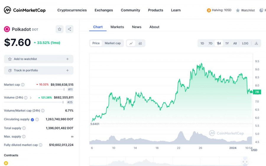Επί του παρόντος, η τιμή του Polkadot διαπραγματεύεται στα 7,6 δολάρια και έχει ήδη αποδείξει την ανθεκτικότητά της. Μάλιστα, τον τελευταίο μήνα έχει πραγματοποιήσει μια εξαιρετική άνοδο, περίπου 35%, κατέχοντας την 11η θέση στα καλύτερα κρυπτονομίσματα , σύμφωνα με το Coinmarketcap.