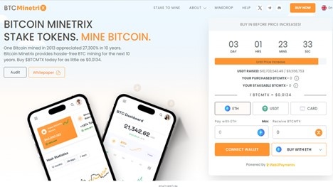 Το Bitcoin Minetrix παρουσιάζει μια επαναστατική προσέγγιση στις επενδύσεις σε κρυπτονομίσματα, προσφέροντας μια καινοτόμο μέθοδο εξόρυξης. Ειδικότερα, το έργο εισάγει μια σύγχρονη πλατφόρμα εξόρυξης στο cloud, μέσω της οποίας οι επενδυτές του BTCMTX έχουν τη δυνατότητα να ποντάρουν τα κρυπτονομίσματά τους ώστε να συμμετέχουν στην εξόρυξη crypto.