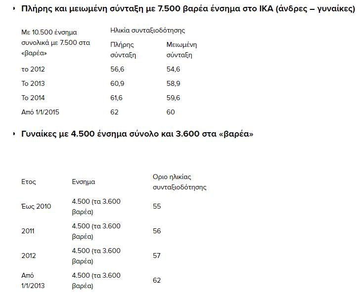 9. Ανδρες και γυναίκες ασφαλισμένοι στο ΙΚΑ για μειωμένη σύνταξη με 10.500 ημέρες ασφάλισης εκ ων οποίων οι 7.500 στα ,βαρέα ως το 2014.