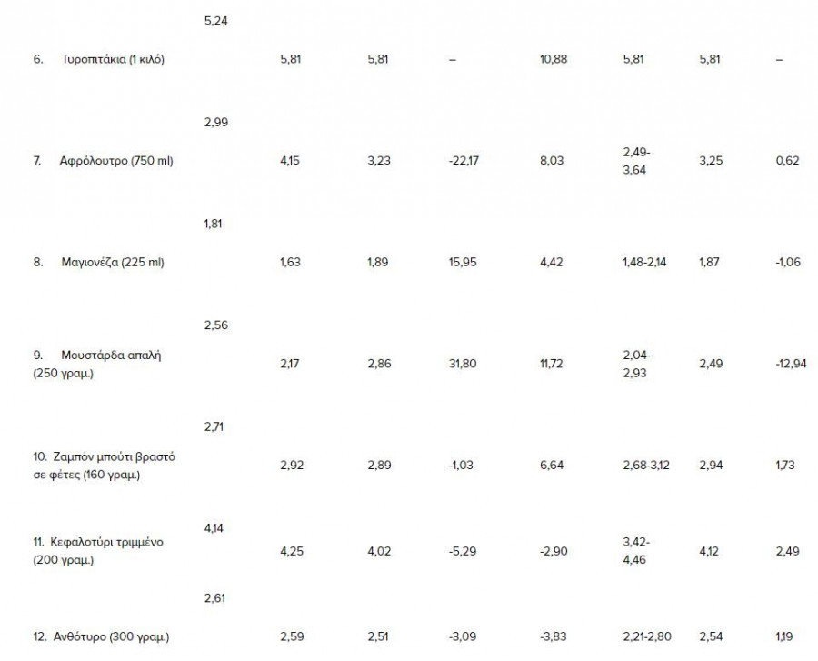 Σε αυτά τα προϊόντα καταγράφονται οι μεγαλύτερες αυξήσεις: