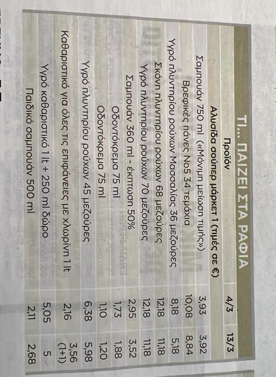 Οι αυξήσεις, αντίστοιχα, σχετίζονται με άλλη μάρκα σαμπουάν 360 ml, 2 ετικέτες οδοντόκρεμας, καθαριστικό για όλες τις επιφάνειες 1 λίτρου και σαμπουάν μαλλιών 500 ml.