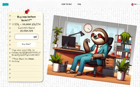 Το Slothana αποτελεί ένα νέο meme coin στο Solana το οποίο μέσα σε ελάχιστες μέρες κατάφερε να συγκεντρώσει πάνω από 5.3 εκατομμύρια δολάρια στην προπώληση. Χωρίς να προσφέρει κάποια χρησιμότητα και κρατώντας αρκετές πληροφορίες ακόμη κρυφές, το συγκεκριμένο κρυπτονόμισμα κατάφερε να γίνει ένα από τα πιο δημοφιλή αυτή τη στιγμή.
