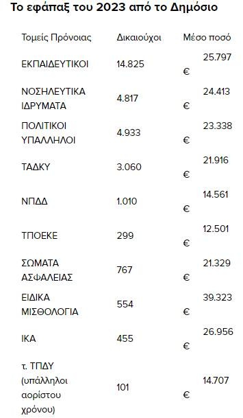 Το Δημόσιο πληρώνει τα περισσότερα εφάπαξ (πάνω από 30.000 κάθε χρόνο), αλλά όχι τα υψηλότερα.