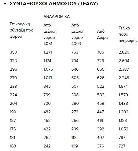 - Για συνταξιούχους Δημοσίου, αναδρομικά από 727 ευρώ ως 2.820 ευρώ.