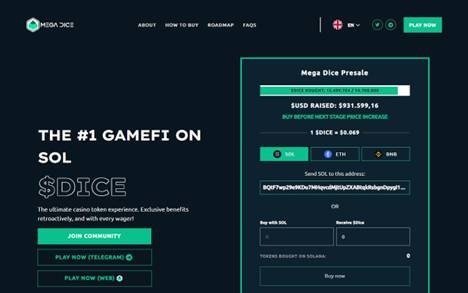 Τελευταία μας επιλογή μεταξύ των νέων κρυπτονομισμάτων με τις μεγαλύτερες προοπτικές ανάπτυξης, είναι και το Dice Token από το Mega Dice Casino. Ένα κρυπτονόμισμα το οποίο συνδυάζει τα πλεονεκτήματα των κρυπτονομισμάτων στο Solana, με τον ενθουσιασμό του GambleFi/GameFi.