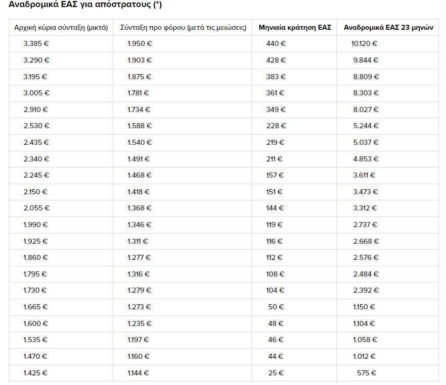 Σύμφωνα με τους ενδεικτικούς πίνακες του ενθέτου με τα αναδρομικά από την ΕΑΣ: