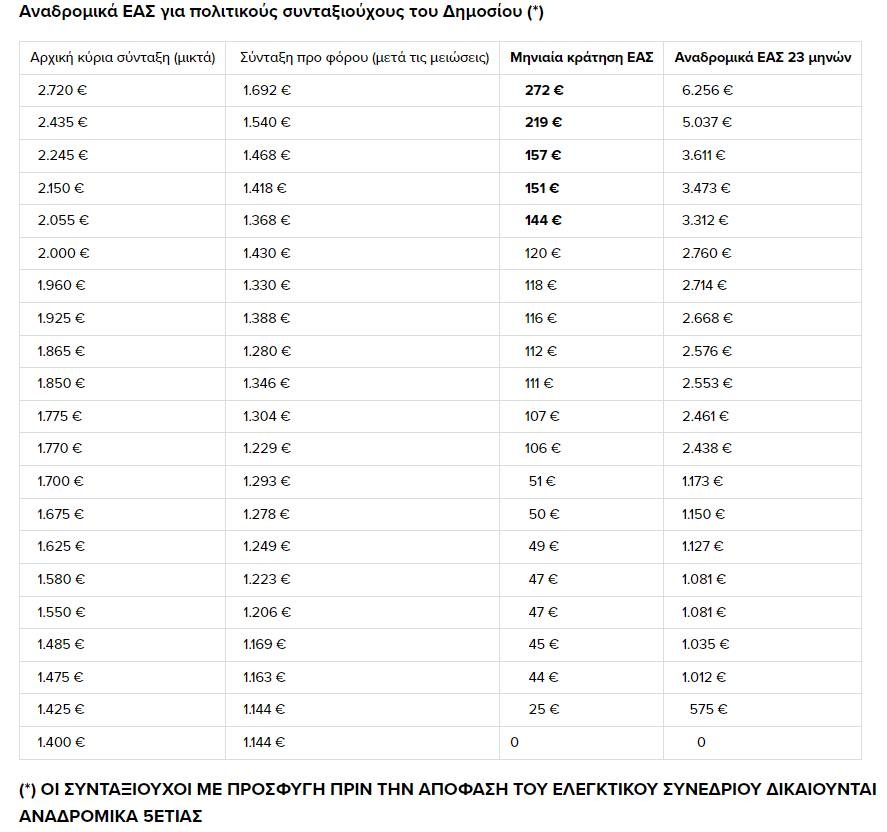 Σύμφωνα με τους ενδεικτικούς πίνακες του ενθέτου με τα αναδρομικά από την ΕΑΣ: