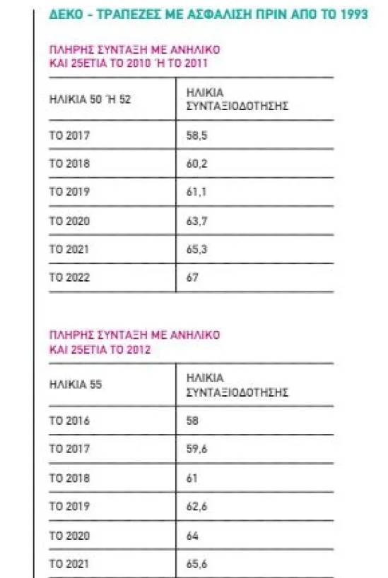 - ∆ΕΚΟ ΚΑΙ ΤΡΑΠΕΖΕΣ - Ανδρες και γυναίκες µε ασφάλιση πριν από το ’93. Με 35ετία το 2019 και το 2020 βγαίνουν στα 61.