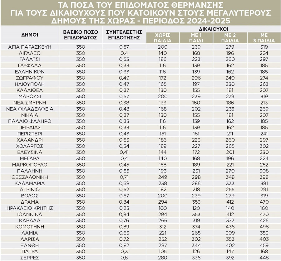 | ΤΑ ΠΟΣΑ ΤΟΥ ΕΠΙΔΟΜΑΤΟΣ ΘΕΡΜΑΝΣΗΣ ΓΙΑ ΤΟΥΣ ΔΙΚΑΙΟΥΧΟΥΣ ΠΟΥ ΚΑΤΟΙΚΟΥΝ ΣΕ 50 ΟΙΚΙΣΜΟΥΣ ΤΗΣ ΧΩΡΑΣ ΜΕ ΤΙΣ ΠΙΟ ΧΑΜΗΛΕΣ ΘΕΡΜΟΚΡΑΣΙΕΣ – ΠΕΡΙΟΔΟΣ 2024-2025 | ||||||