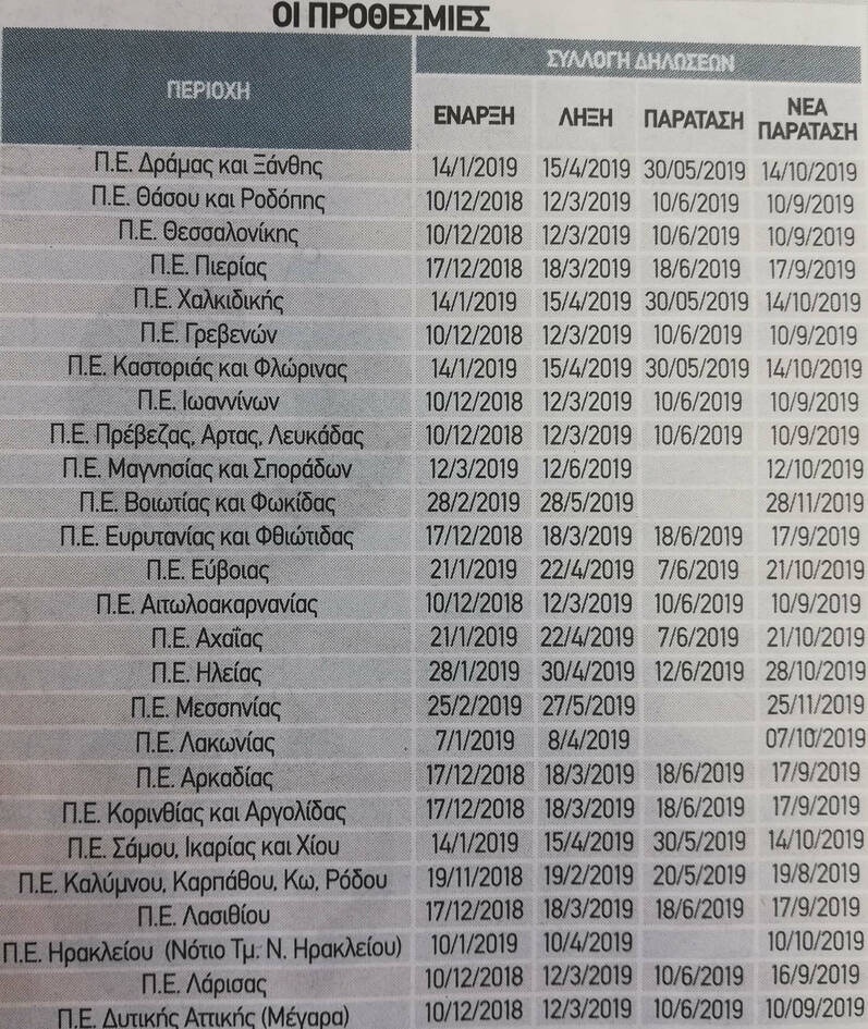 Την ερχόμενη Δευτέρα 20 Μαΐου 2019 λήγει το χρονικό περιθώριο των προβλεπόμενων παρατάσεων για τα Δωδεκάνησα, ενώ στις 10 και 17 Ιουνίου 2019 λήγει το εξάμηνο για πολλές άλλες περιοχές.