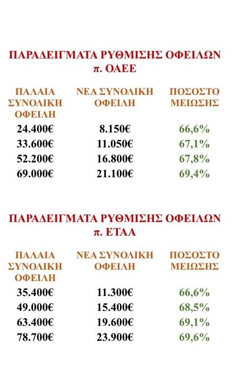 *Οι οφειλέτες μπορούν, εάν θελήσουν, να εντάξουν στη νέα ρύθμιση και ήδη ρυθμισμένες οφειλές τους, ενταγμένες στις «πάγιες ρυθμίσεις» των 12 ή 24 μηνιαίων δόσεων.
