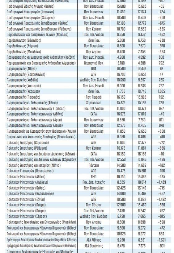 Υπάρχει ακόµη η οικονοµική κατάσταση της κάθε οικογένειας, που µπορεί να επιδεινώθηκε µε την κρίση του κορονοϊού και να αναγκάσει τους γονείς να µην επιτρέψουν στα παιδιά τους να δηλώσουν σχολές εκτός της οικογενειακής εστίας. Η επίπτωση της αλλαγής στον τρόπο που δηλώνουν οι υποψήφιοι τις σχολές θα είναι να ανοίξει η ψαλίδα µεταξύ των τµηµάτων σε Αθήνα και Θεσσαλονίκη µε τα τµήµατα στην περιφέρεια. ∆ηλαδή περιµένουµε να πέσουν οι βάσεις πιο πολύ στην περιφέρεια απ’ ό,τι σε Αθήνα και Θεσσαλονίκη. Όλα αυτά δεν είναι µετρήσιµα µεγέθη, θα τα δούµε µε την ανακοίνωση των βάσεων και συνεπώς δεν µπορούν να συνυπολογισθούν στην παρούσα εκτίµηση.