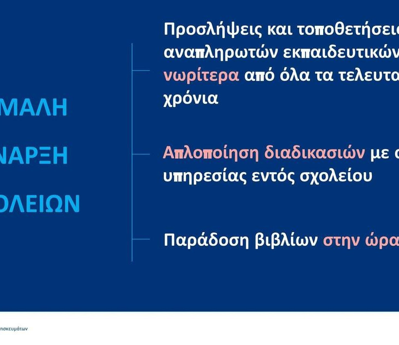 - Έχουν ήδη ολοκληρωθεί προσλήψεις αναπληρωτών εκπαιδευτικών και ειδικού εκπαιδευτικού και βοηθητικού προσωπικού, πιο νωρίς από όλα τα τελευταία χρόνια.
