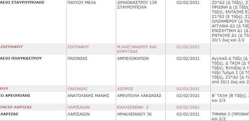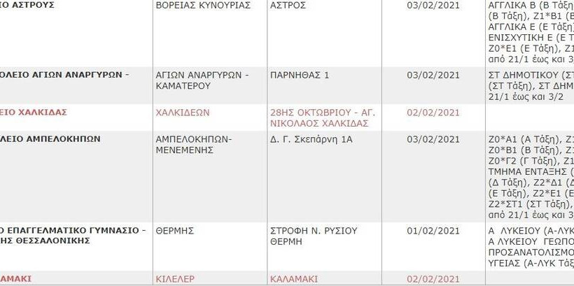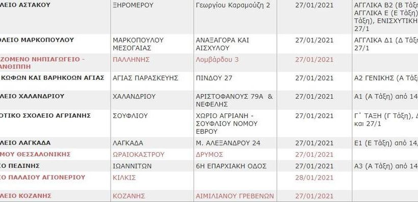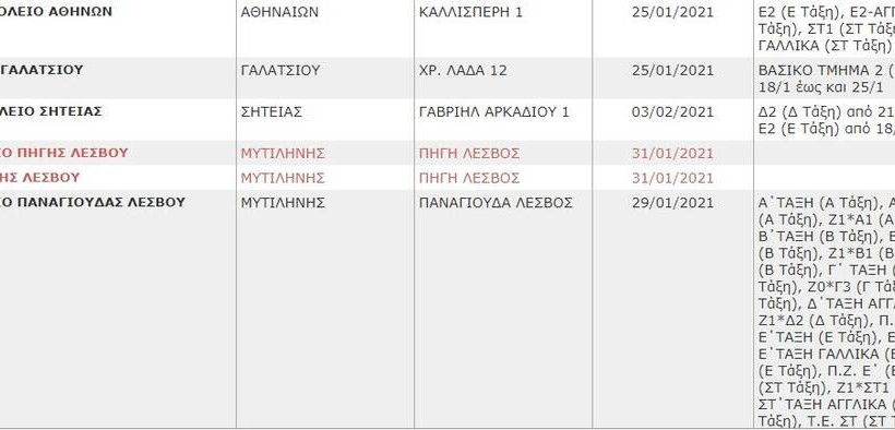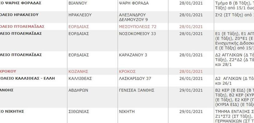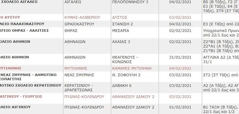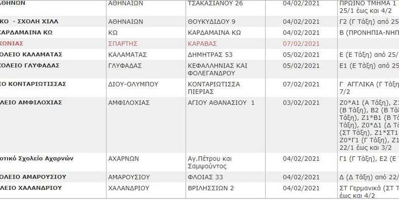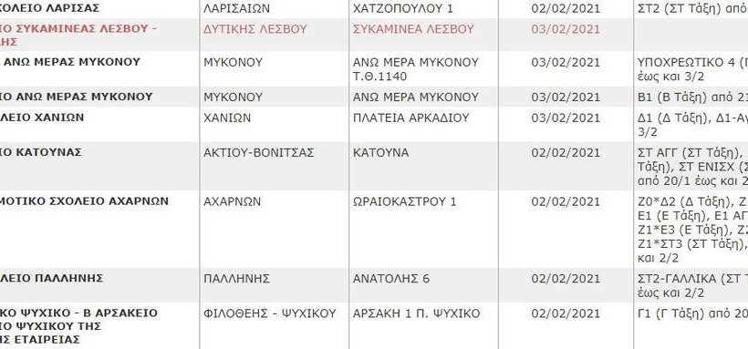 Δείτε στη Gallery τη λίστα των σχολείων που θα παραμείνουν κλειστά το επόμενο διάστημα (η λίστα ανανεώνεται):