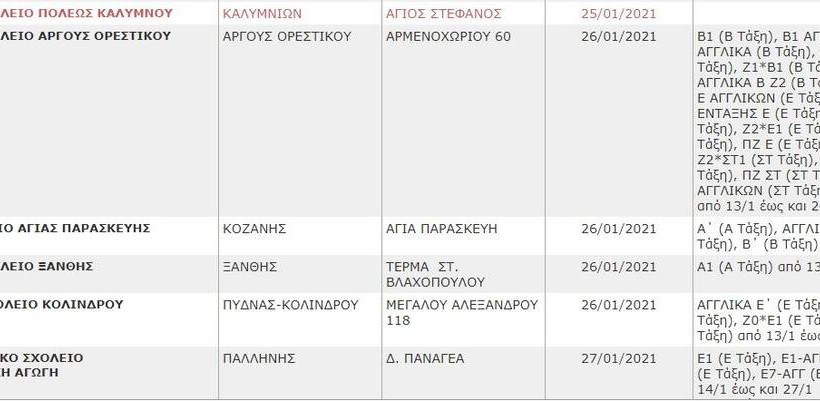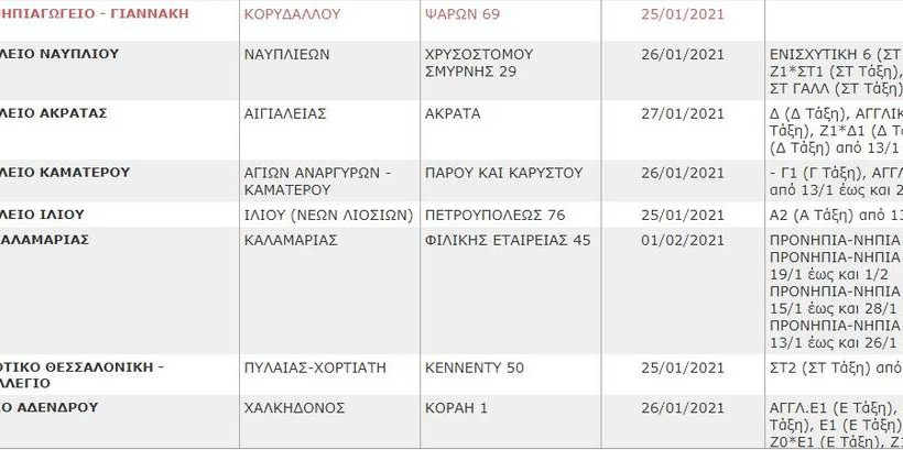 Κλειστά σχολεία την Δευτέρα (25/1) - Κορονοϊός: Δείτε ΕΔΩ την αναλυτική λίστα