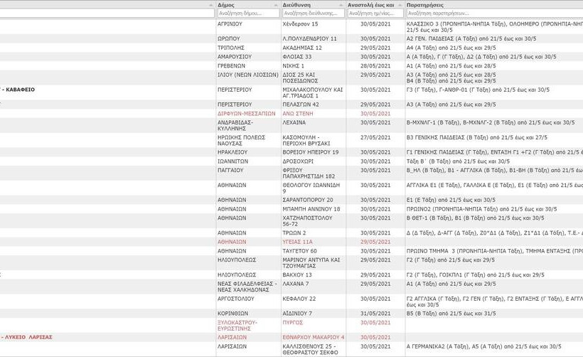 Σύμφωνα με τα τελευταία στοιχεία, αυτή είναι η λίστα των σχολείων που θα παραμείνουν κλειστά το επόμενο διάστημα (η λίστα ανανεώνεται):