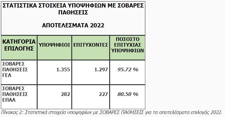 Β) ΑΠΟΤΕΛΕΣΜΑΤΑ ΣΟΒΑΡΩΝ ΠΑΘΗΣΕΩΝ