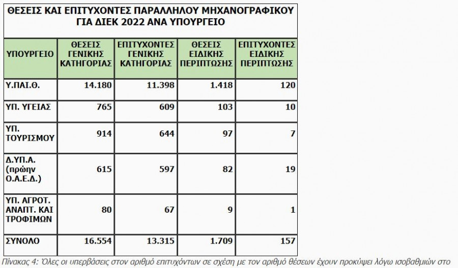 Μετά την ολοκλήρωση της διαδικασίας έκδοσης αποτελεσμάτων, οι επιτυχόντες του παράλληλου μηχανογραφικού είναι συνολικά 13.472. Πιο συγκεκριμένα, οι 13.315 είναι επιτυχόντες στη γενική κατηγορία και 157 στην ειδική κατηγορία.