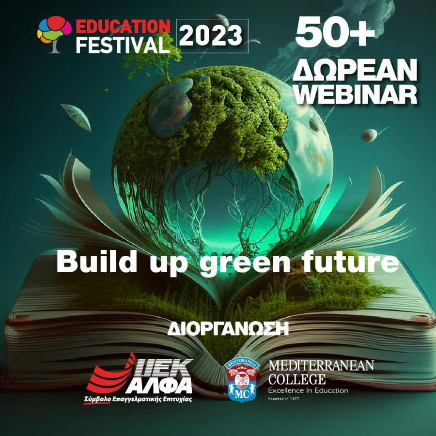 Με σύνθημα “Build up green future”, οι εκπαιδευτικοί φορείς ΙΕΚ ΑΛΦΑ & Mediterranean College -με σειρά δράσεων για το περιβάλλον και πρωτοβουλιών προσφοράς στο κοινωνικό σύνολο διαχρονικά- παρέχουν με το 15ο EDUCATION FESTIVAL, ΔΩΡΕΑΝ εκπαίδευση και εξειδικευμένες γνώσεις γύρω από αυτήν, καθώς κάθε χώρος-κλάδος (Τουρισμός, Μόδα, Business, Πληροφορική, Επισιτισμός κ.ά.) παρουσιάζει τις δικές του ανάγκες.