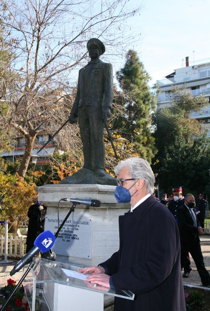 «Είμαστε μαζί σήμερα εδώ, για ακόμη μια χρονιά στο ετήσιο μνημόσυνο, το οποίο τελεί ο Δήμος Πειραιά για τον Παναγιώτη Βλαχάκο, τον Πειραιώτη αξιωματικό του Πολεμικού Ναυτικού, που «έπεσε» στο καθήκον υπερασπιζόμενος την πατρίδα μας.