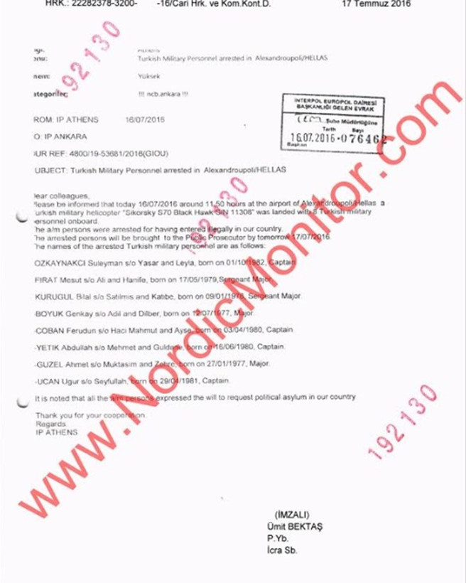 Υπενθυμίζεται ότι το Nordic Monitor, επικαλούμενο απόρρητα έγγραφα, ανέφερε ότι η Τουρκία είχε σχεδιάσει στρατιωτική επιχείρηση για να πάρει πίσω τους 8 Τούρκους αξιωματικούς που φέρονται να εμπλέκονταν στο πραξικόπημα κατά του Ταγίπ Ερντογάν στις 15 Ιουλίου του 2016.