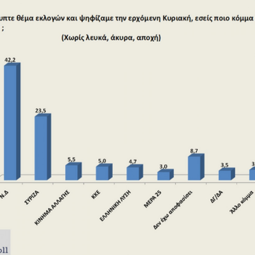 Νέα δημοσκόπηση - «βόμβα»: Αυτή είναι η διαφορά ΝΔ - ΣΥΡΙΖΑ