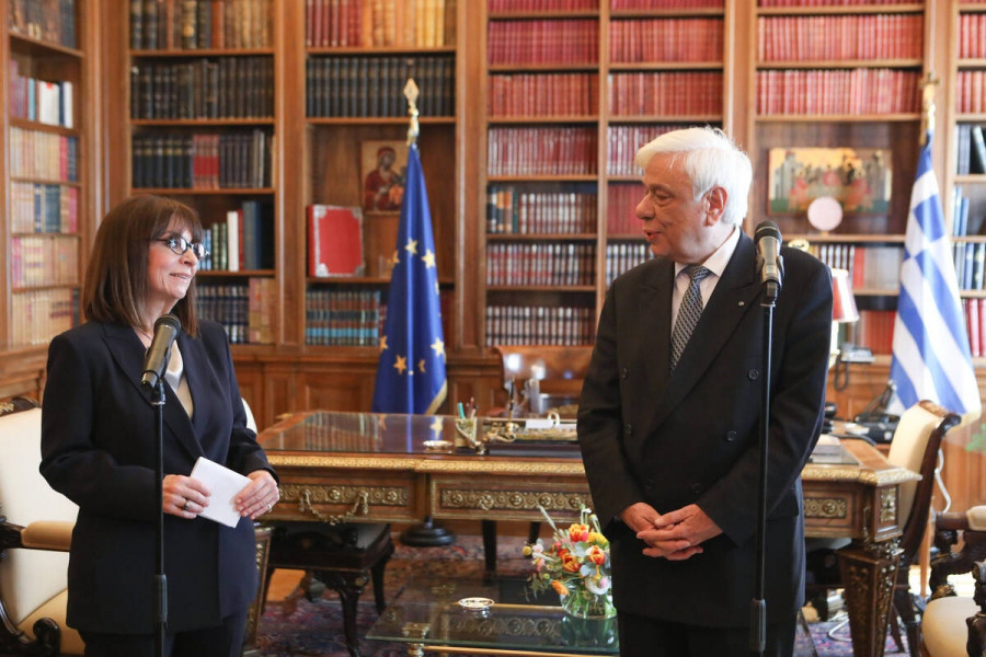 Από την πλευρά του, ο απερχόμενος Πρόεδρος της Δημοκρατίας, υποδεχόμενος την κ. Σακελλαροπούλου, της ευχήθηκε ολόψυχα κάθε επιτυχία κατά την επιτέλεση των καθηκόντων της, ιδίως σ' αυτές τις κρίσιμες ώρες, υπογραμμίζοντας ότι η επιτυχία της αφορά τον τόπο μας και το λαό μας.