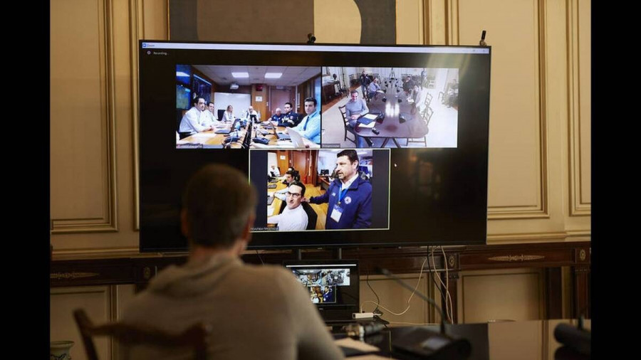 Ο πρωθυπουργός Κυριάκος Μητσοτάκης συνεχάρη σήμερα τα στελέχη της Υπηρεσίας Πολιτικής Προστασίας για «την εξαιρετική δουλειά υπό αντίξοες συνθήκες» κατά την «ξενάγησή» του μέσω τηλεδιάσκεψης, στο Κέντρο Επιχειρήσεων Πολιτικής Προστασίας, από τον αρμόδιο υφυπουργό Πολιτικής Προστασίας και Διαχείρισης Κρίσεων Νίκο Χαρδαλιά.