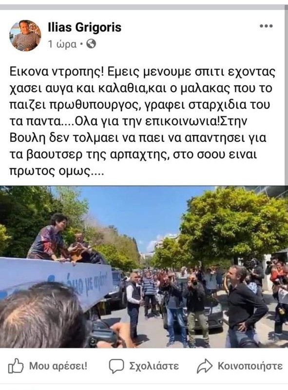 «O υποψήφιος βουλευτής του ΣΥΡΙΖΑ Ηλίας Γρηγόρης ξεπέρασε κάθε όριο χυδαιότητας κατα του Πρωθυπουργού, μελών της κυβέρνησης και ανθρώπων που δίνουν στην πρώτη γραμμή τη μάχη κατά του κορονοϊού όπως ο Σ.Τσιόδρας και ο Ν.Χαρδαλιάς.